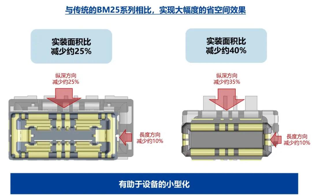 特点 1 兼顾供电能力和小型化的设计 - 额定电流:支持电源端子15A、信号端子0.3A - 嵌合高度:0.6mm、纵深:2.0mm 2 通过全包覆构造,确保高牢固性 3 使接触电阻最小化,节省电力 4 实现小型,高抜出力 5 互相夹紧型多触点构造,确保高接触可靠性 有助于小型化&大电流化